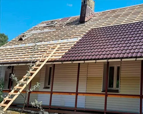 - Замена кровельного покрытия: на металлочерепицу или мягкую, профнастил, ондулин;